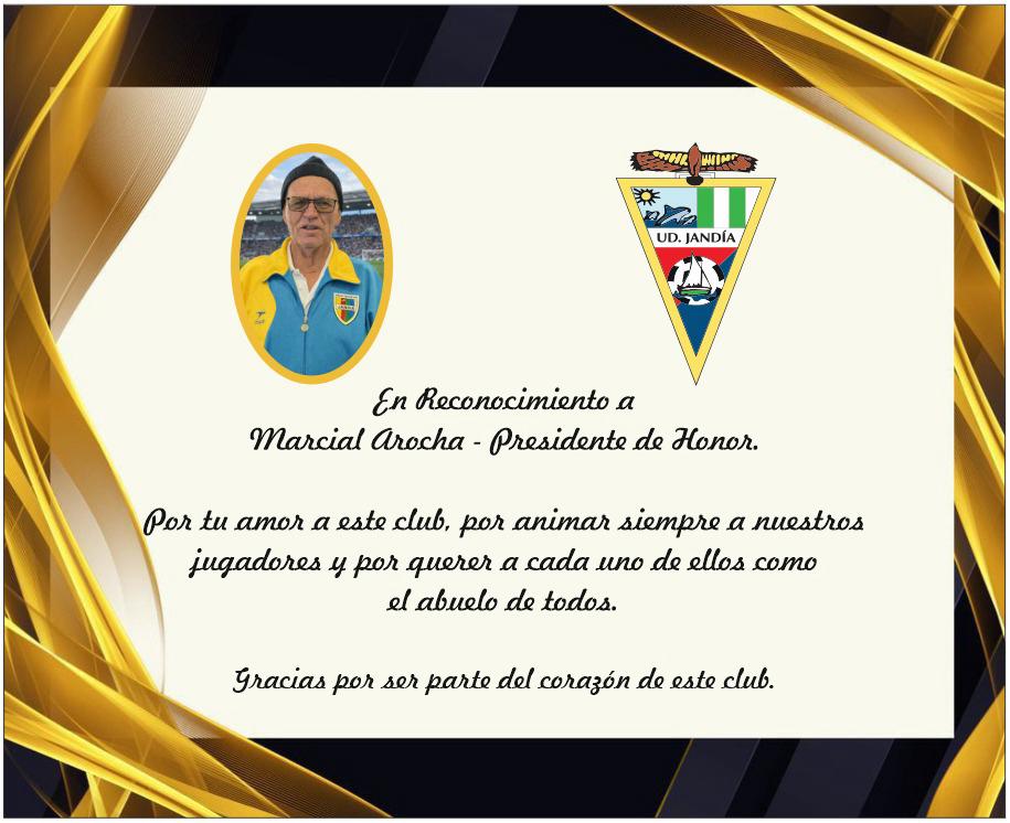 Durante el reconocimiento, el club anunció su nombramiento como Presidente de Honor de la UD Jandía. De esta forma, la entidad quiso agradecer públicamente su compromiso con el fútbol local.