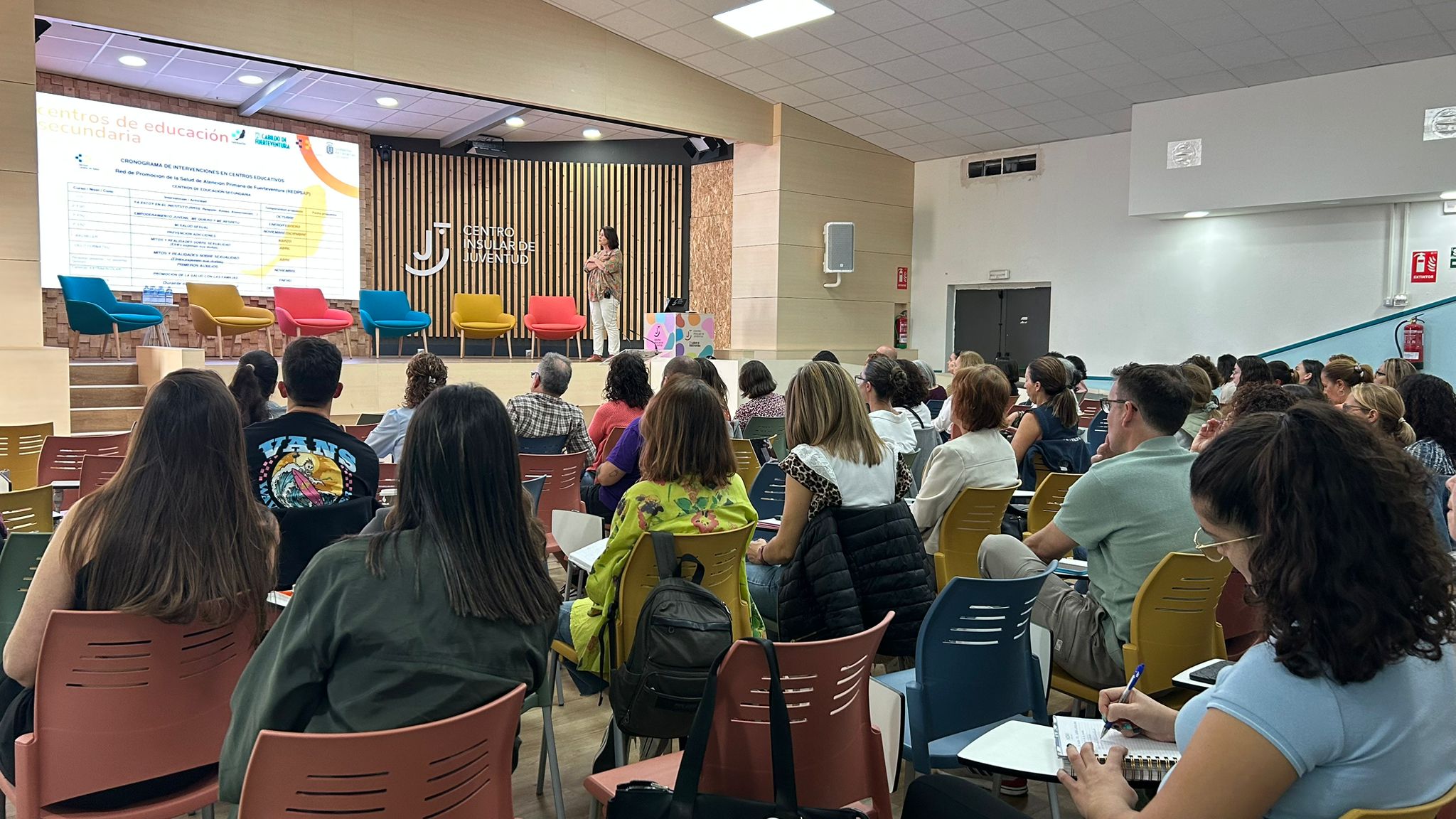 El programa incluyó una ponencia inicial del psicólogo de OXIA, Salvador González, donde presentó estrategias activas para prevenir el bullying. Además, tuvo lugar la presentación del proyecto preventivo del IES Puerto del Rosario y la experiencia ‘Consulta Joven’ del Área de Salud de Fuerteventura.