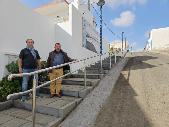 El alcalde, Matías Peña y el concejal de área, Giuseppe Signorino han comprobado este martes 3 de diciembre por la mañana, la actuación en este tramo que presenta una pendiente pronunciada y que es paso para numerosos vecinos residentes y turistas que visitan este pueblo costero.