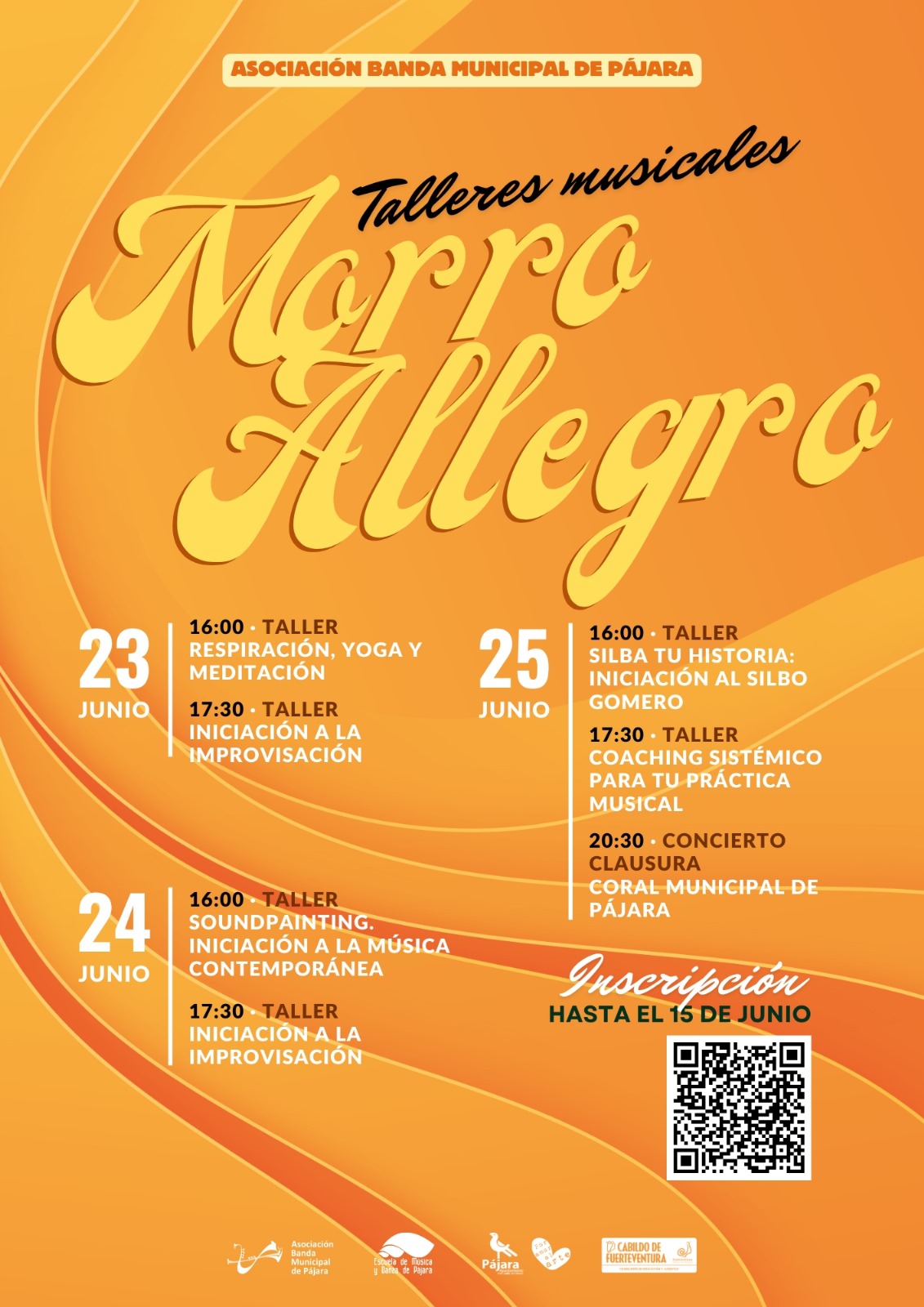 Del 23 al 25 de junio, el municipio de Pájara acoge la nueva edición de “Morro Allegro”, un encuentro formativo y artístico impulsado por la Asociación Banda Municipal de Pájara, con la colaboración del Ayuntamiento de Pájara y el Cabildo de Fuerteventura. El evento, que se desarrollará en el local de ensayo de la Banda, ofrece una variada propuesta de talleres musicales especializados, diseñados para enriquecer la práctica de músicos y estudiantes de diferentes edades y niveles.