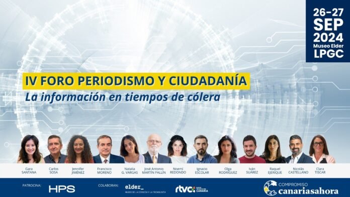 Con el sugerente subtítulo de “La información en tiempos de cólera”, el periódico Canarias Ahora celebrará estos dos próximos días 26 y 27 de septiembre en el Museo Elder de la Ciencia y la Tecnología, de Las Palmas de Gran Canaria, su IV Foro de Periodismo y Ciudadanía con el que pretende abordar, de la mano de personas expertas en la materia, los desafíos a los que se enfrenta la profesión y cómo debería actuar en la actual coyuntura.