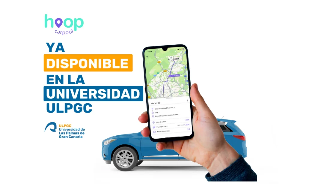 Tras un reciente acuerdo entre la ULPGC y Hoop Carpool www.hoopcarpool.com/, la comunidad universitaria se beneficiará del uso de esta nueva app, de forma gratuita (esto es, sin comisiones). La ULPGC incentivará el uso de este aplicativo bonificando el 50% de los trayectos que realicen los miembros de la comunidad universitaria.