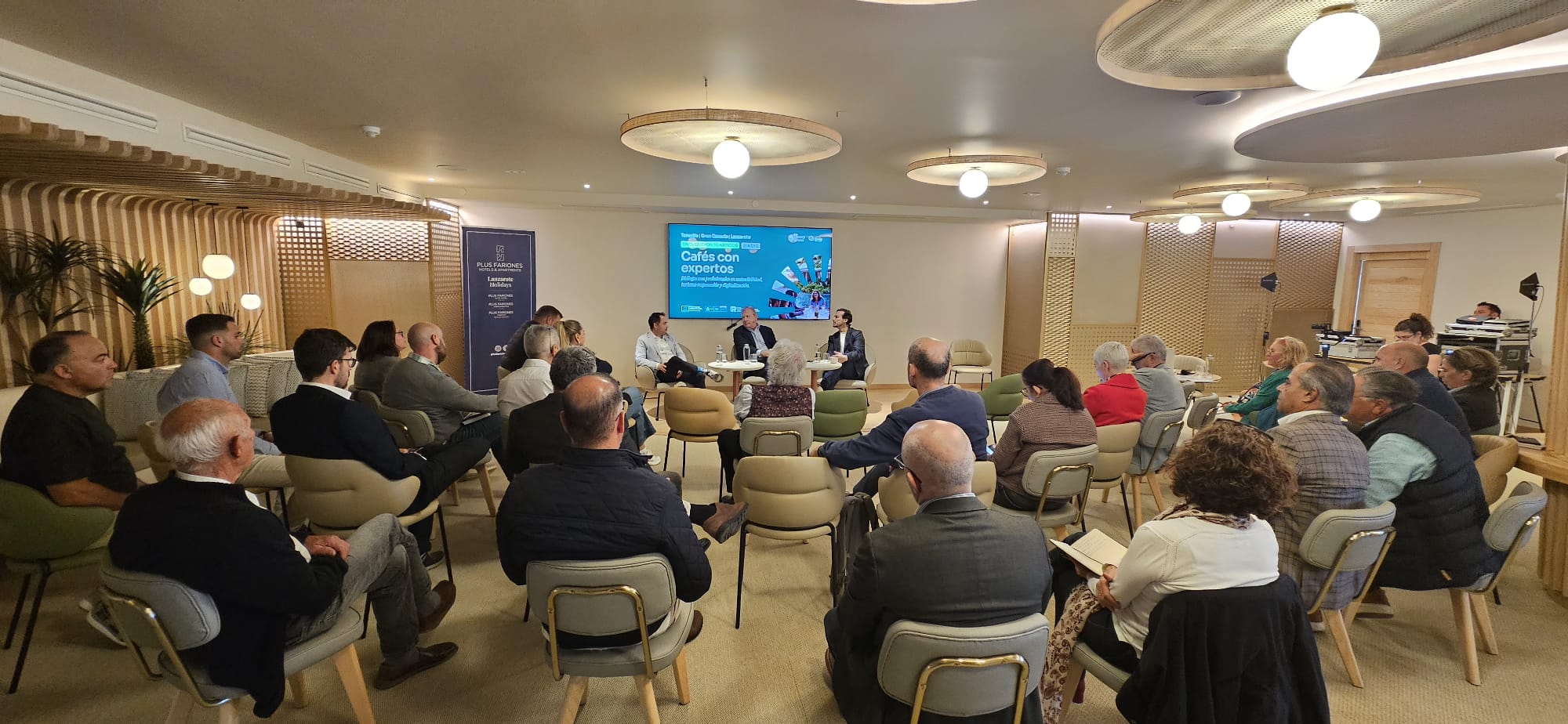 Más de 30 empresas, profesionales del sector y representantes municipales participaron hoy en el municipio de Tías en una nueva sesión del ciclo «Cafés con Expertos», organizado por la Asociación de Municipios Turísticos de Canarias (AMTC) dentro del proyecto «Soy Canary Green».