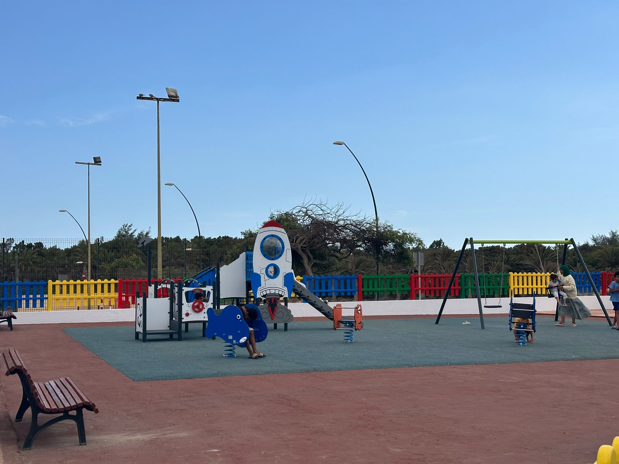 La Concejalía de Parques y Jardines del Ayuntamiento de Pájara renueva el parque infantil ubicado en la Avenida Happag Lloyd de Costa Calma, situado al lado del CEIP Costa Calma. Este proyecto, que ha contado con una inversión de más de 30.000 euros, ha permitido actualizar y mejorar la seguridad de las instalaciones recreativas.