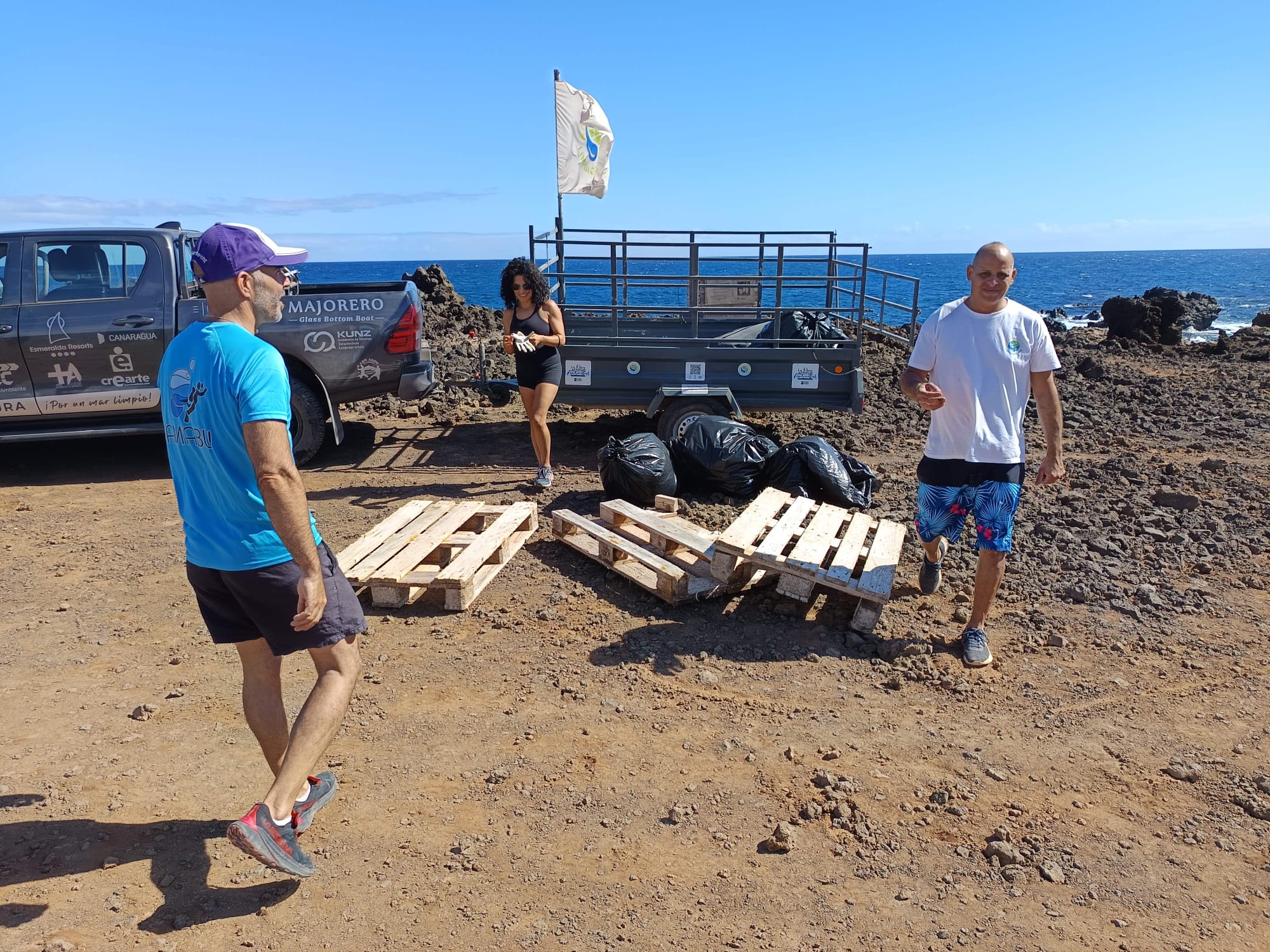 Este fin de semana, voluntarios y voluntarias de Limpiaventura han retirado varios sacos de basura, plásticos, restos de palets en los entrantes costeros de más complicado acceso en el litoral municipal de Antigua.