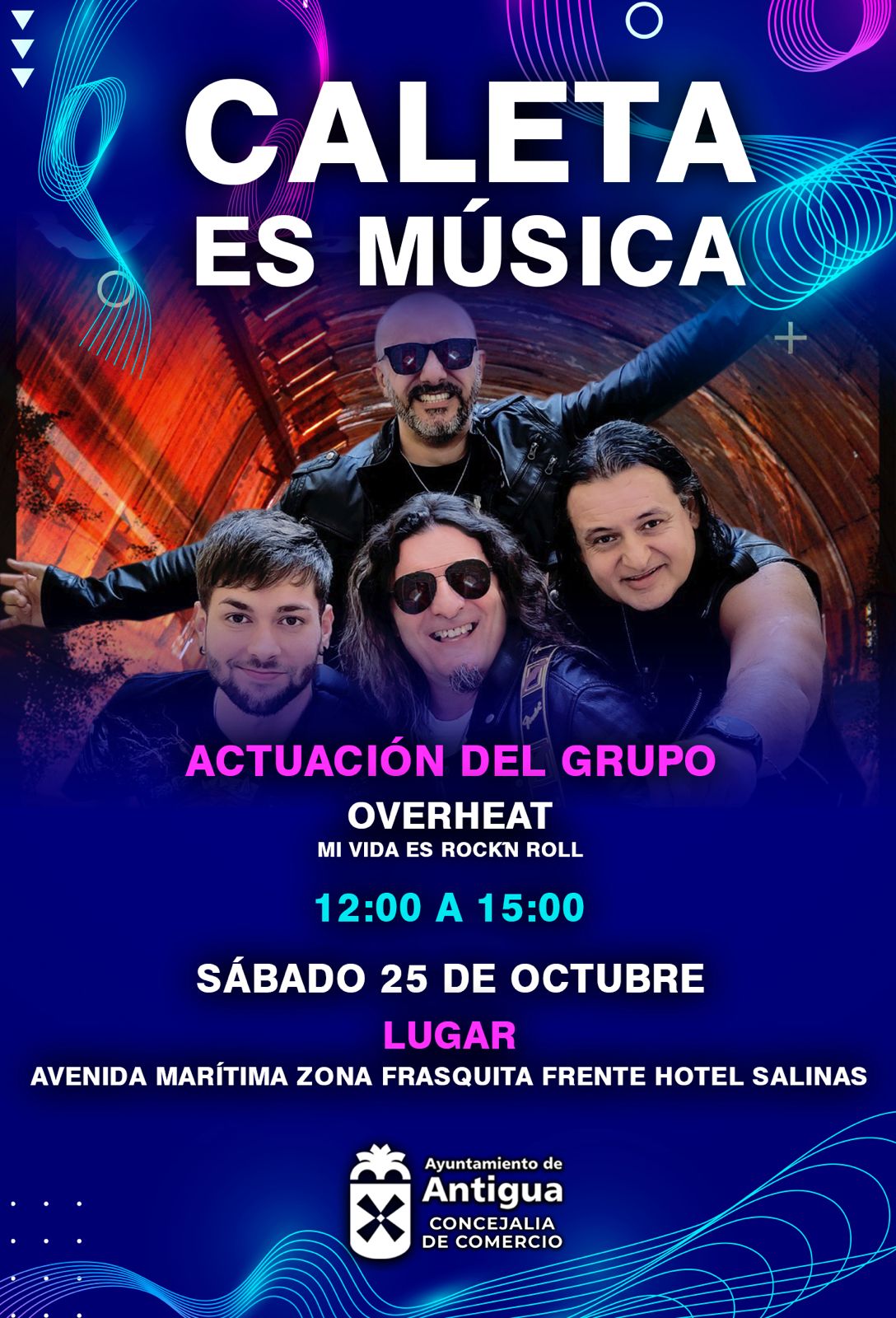 Este sábado 18 de octubre de 12:00 a 15:00 horas, en el paseo marítimo de El Castillo, junto al Frasquita, Caleta es Música propone el espectáculo musical Mi vida es Rock’n Roll con Overheat Band Fuerteventura.