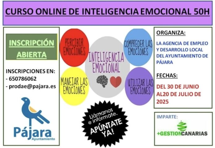Las inscripciones están ya abiertas y pueden realizarse a través del teléfono 650 786 062 o mediante correo electrónico en prodae@pajara.es. La formación se desarrollará de forma online, facilitando así el acceso a todas las personas interesadas, sin importar su ubicación.