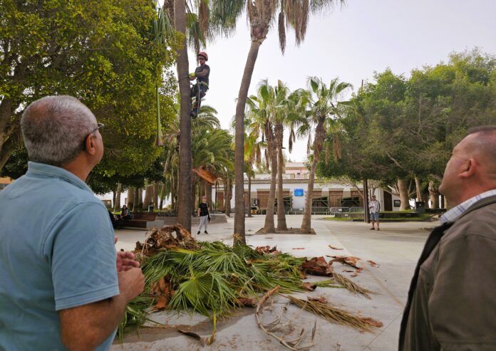 La contratación de esta poda artesanal no sólo permite embellecer de forma destacada cada ejemplar de palmera, afirma el alcalde, Matías Peña García, sino que permite respaldar una empresa majorera que apuesta por la calidad y el trabajo bien terminado como Garden Solutions Fuerteventura, además de liberar para otras tareas, también principales, al equipo municipal.