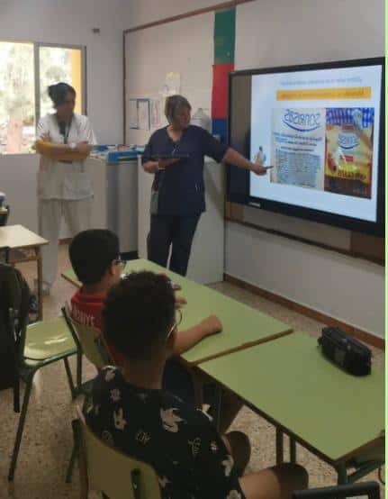 En las diferentes sesiones, los profesionales emplearon vídeos y actividades lúdicas para abordar con el alumnado la localización de los alimentos saludables como las frutas y verduras, panes integrales, legumbres, productos lácteos de bajo contenido en grasas, alimentos con almidón, etc. Una iniciativa que, además, permitió acercar las actividades de la Enfermería Familiar y Comunitaria a los centros educativos.