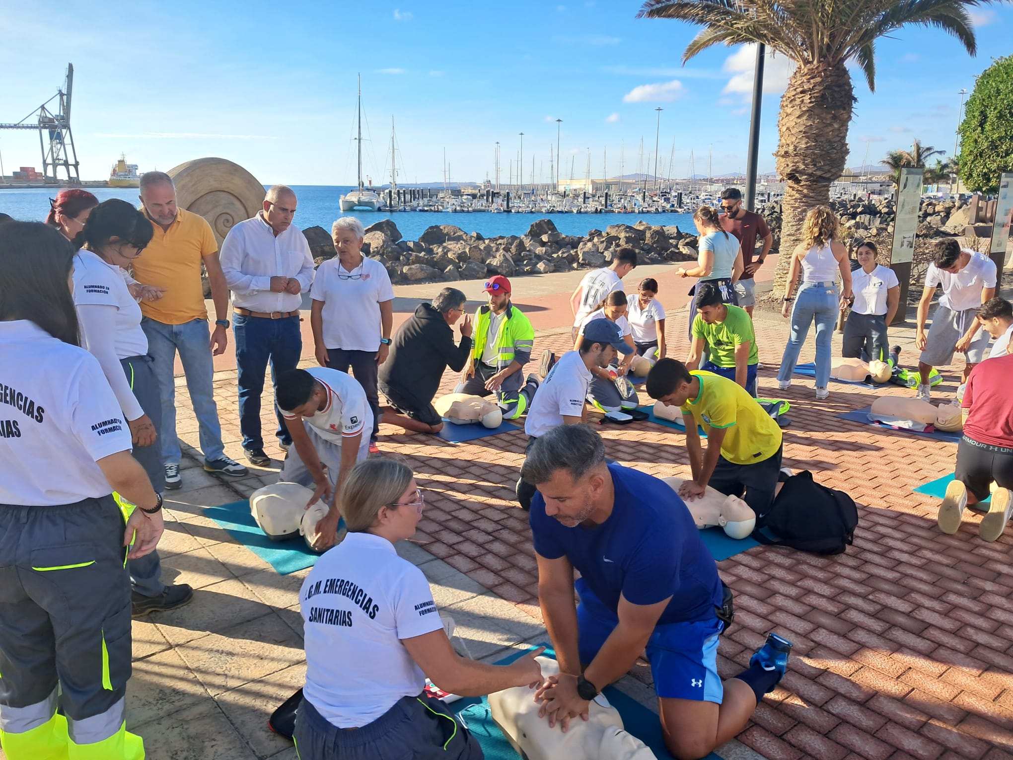 Durante la jornada, se llevaron a cabo talleres prácticos de reanimación cardiopulmonar (RCP) dirigidos a estudiantes y ciudadanía, con la participación del director del Servicio Canario de Salud, Tomás Pérez, así como del personal sanitario del Área de Salud de Fuerteventura.