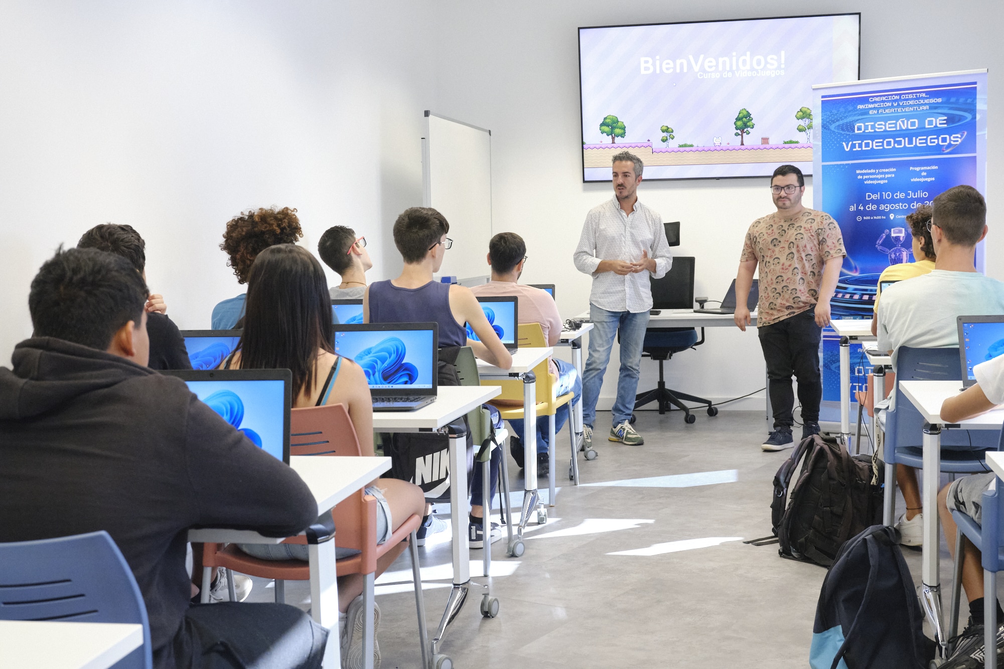 Un total de quince jóvenes aprenden durante un mes a crear y diseñar videojuegos gracias a la Consejería de Innovación del Cabildo de Fuerteventura. Este programa piloto de formación dio comienzo hoy, lunes, día 10 de julio, y se imparte en el Centro Insular de Juventud.