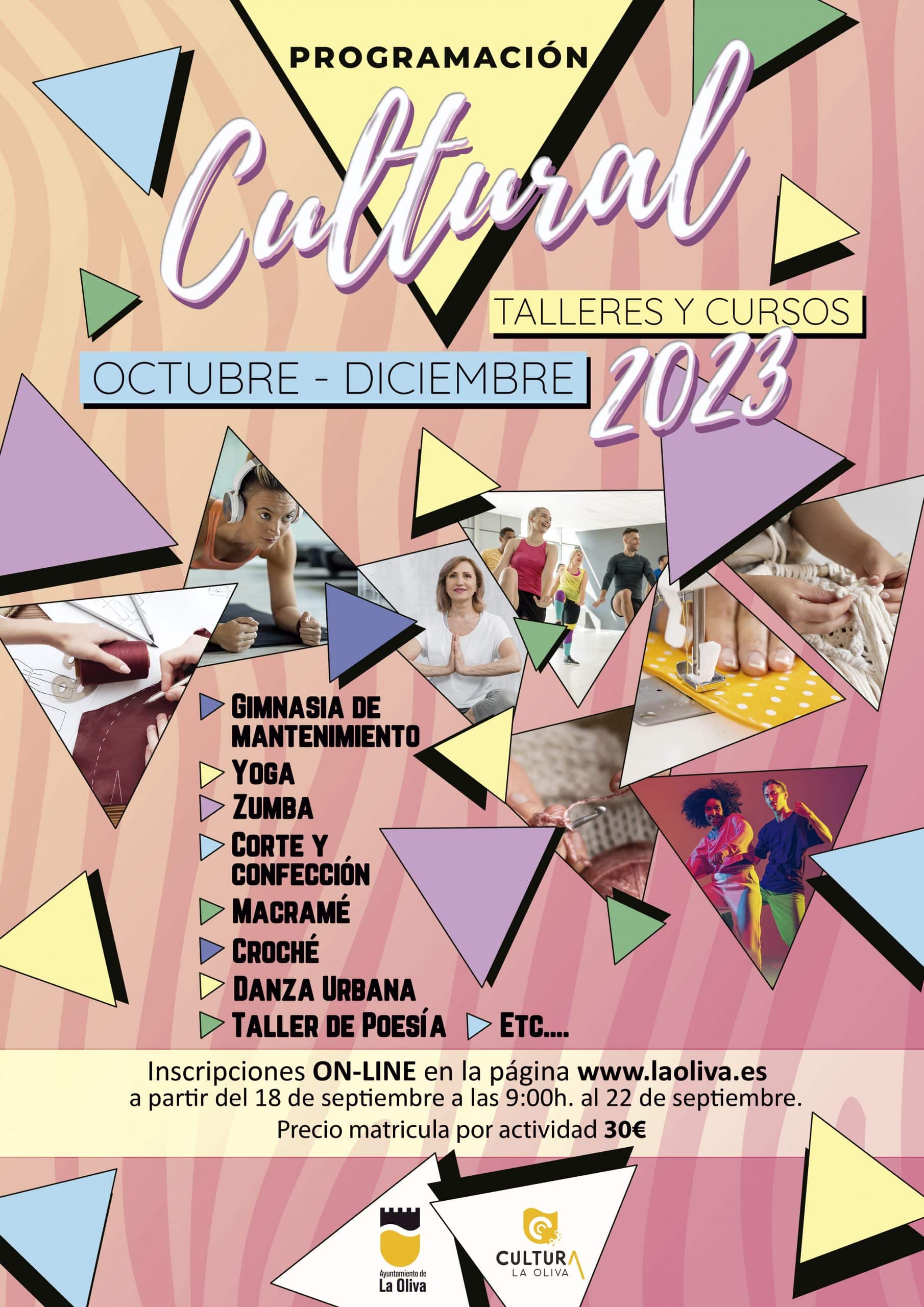 A partir del próximo lunes, 18 de septiembre, a las 9:00 horas, se abrirá el período de inscripciones en línea. Los interesados podrán formalizar sus inscripciones a través del sitio web oficial del Ayuntamiento de La Oliva (www.laoliva.es) y la página de Facebook de Cultura La Oliva. En estos canales, se detallará la programación por centro cultural, actividad y horarios. Cada actividad tendrá un costo de 30€ por trimestre, que deberá abonarse una vez que se confirme la admisión en el taller. Los detalles sobre el proceso de pago se proporcionarán a cada usuario.