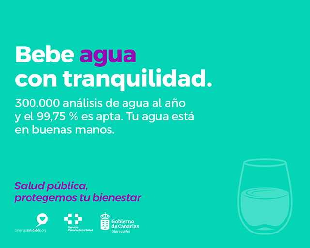 - “Bebe agua con tranquilidad: 300.000 análisis al año avalan que el 99,75% del agua es apta para el consumo”.