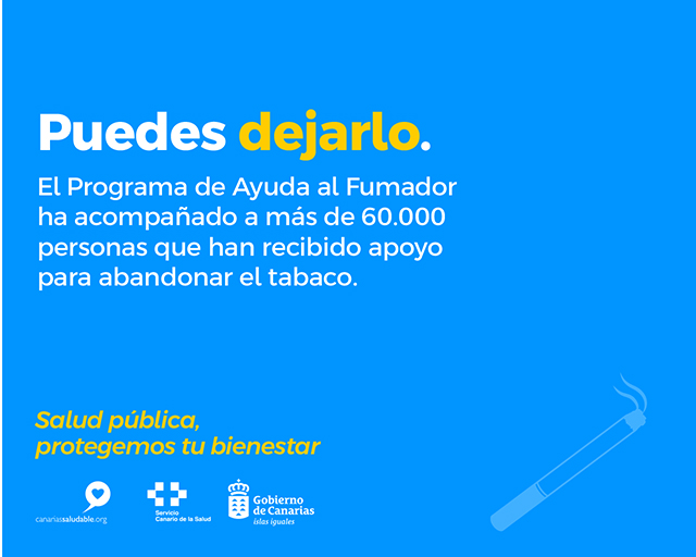- “Puedes dejarlo. Más de 60.000 personas han recibido apoyo del programa de ayuda al fumador”.