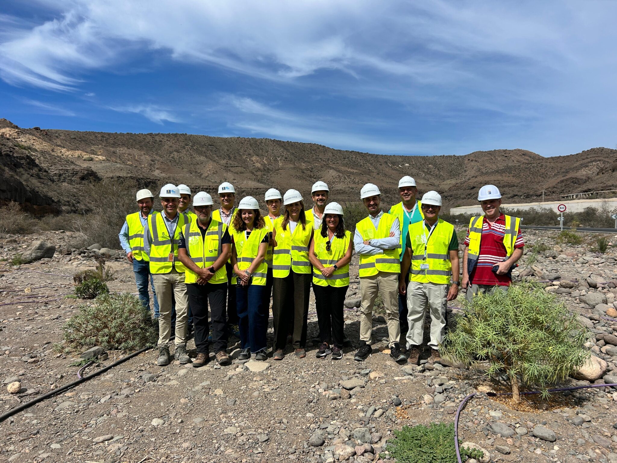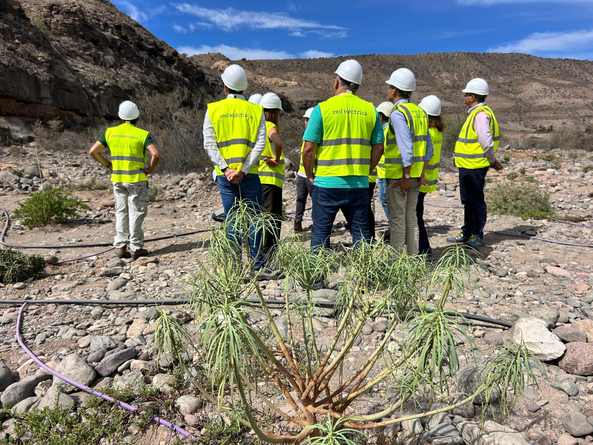 La viceconsejera de Transición Ecológica, Lucha contra el Cambio Climático y Energía del Gobierno de Canarias, Julieta Schallenberg, ha visitado las obras de restauración ambiental del barranco de Arguineguín. Lo ha hecho acompañada por la delegada de Red Eléctrica en Canarias, Ainara Irigoyen; y por el director de Infraestructuras en Canarias de Red Eléctrica, Daniel Pérez Varela. Además, también estuvieron presentes el gerente del Consejo Insular de Aguas de Gran Canaria, Carmelo Santana; y del director técnico del Salto de Chira, Yonay Concepción, del Cabildo de Gran Canaria; así como técnicos de la Consejería regional. La actuación se desarrolla en el marco del proyecto del Salto de Chira y es impulsada por Red Eléctrica.
