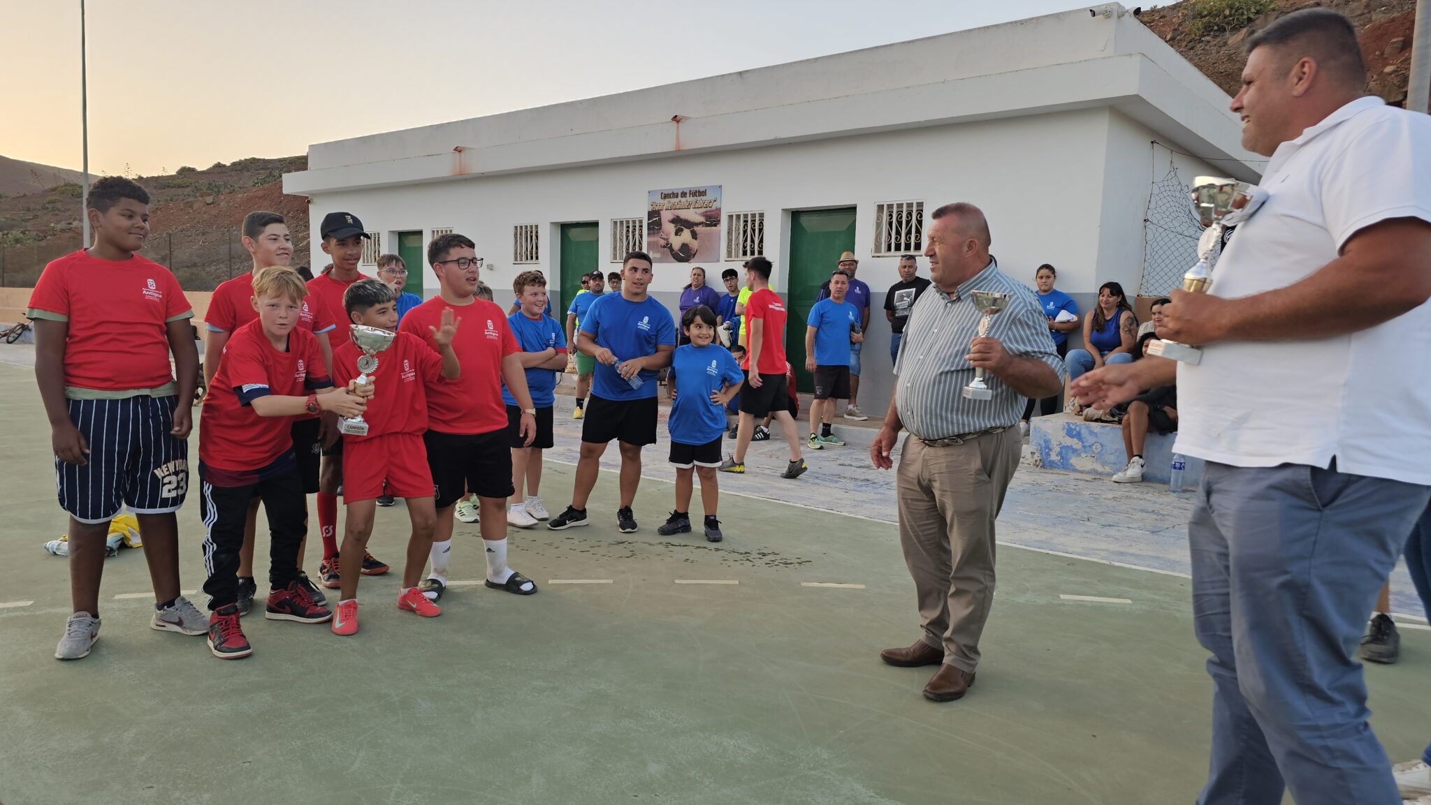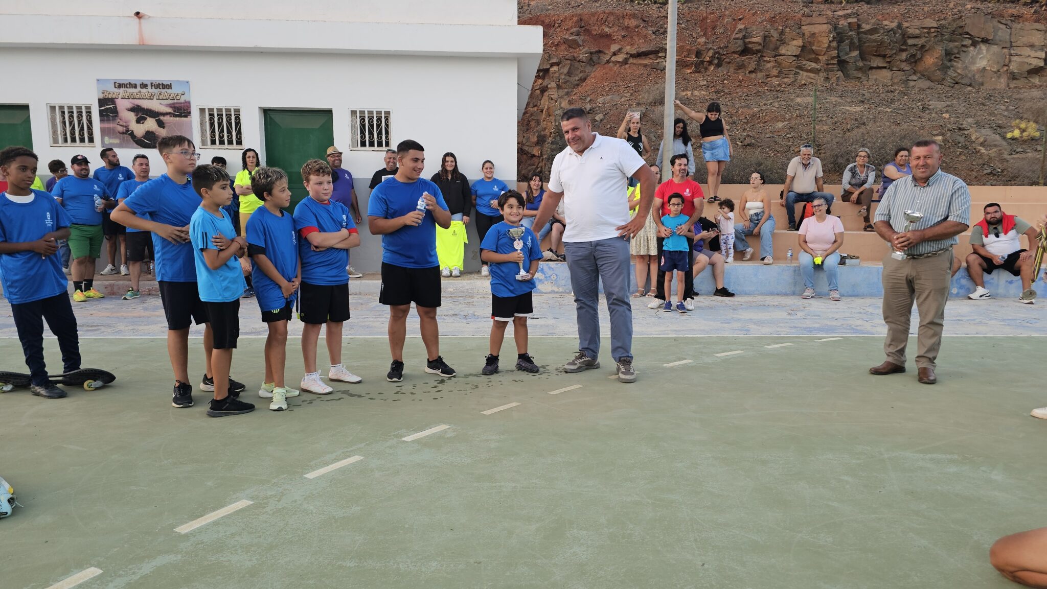 Este Memorial Isaac Hernández Cabrera demuestra también la unión de la familia, de los vecinos de Agua de Bueyes, la Comisión de Fiestas y las concejalías de Festejos y Deportes del Ayuntamiento de Antigua, afirma el concejal Samuel Torres, un ejemplo para muchos otros eventos, siendo este un torneo de fútbol por el que cada año seguiremos apostando.