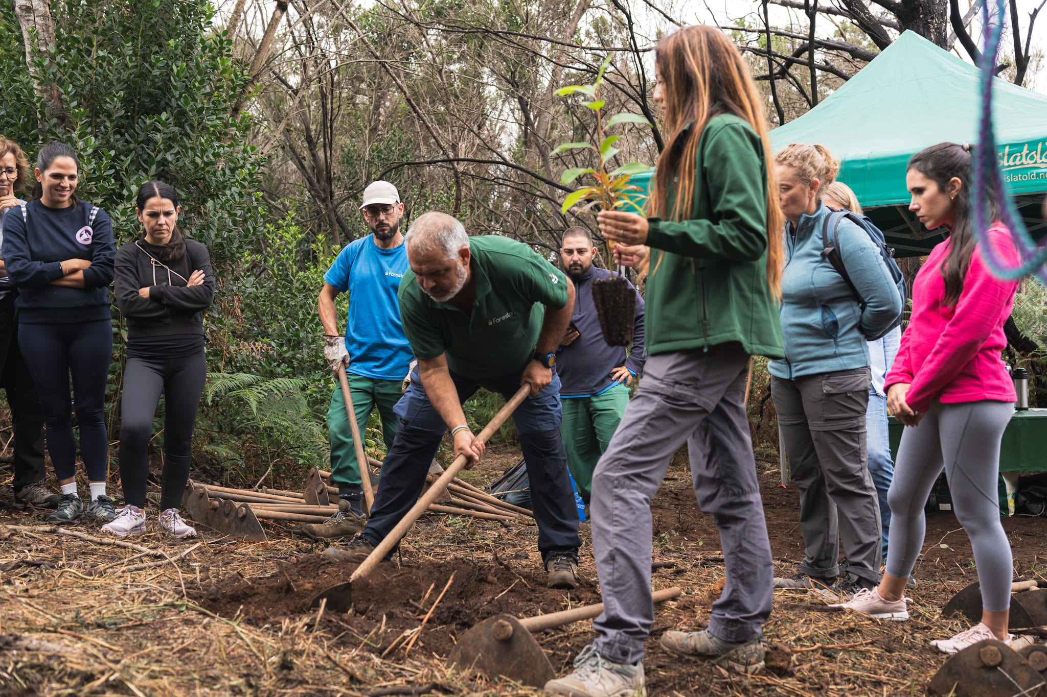 En la jornada organizada por Turismo de Islas Canarias se plantaron más de un centenar de árboles de Monteverde, concretamente faya y viñátigo. La faya sirve de barrera verde contra los incendios, se asocia a ambientes muy húmedos y sus hojas ayudan a captar y canalizar esa humedad hacia el suelo, lo cual contribuye al equilibrio hídrico del ecosistema, lo que contribuye a ralentizar el fuego cuando va avanzando sin control.