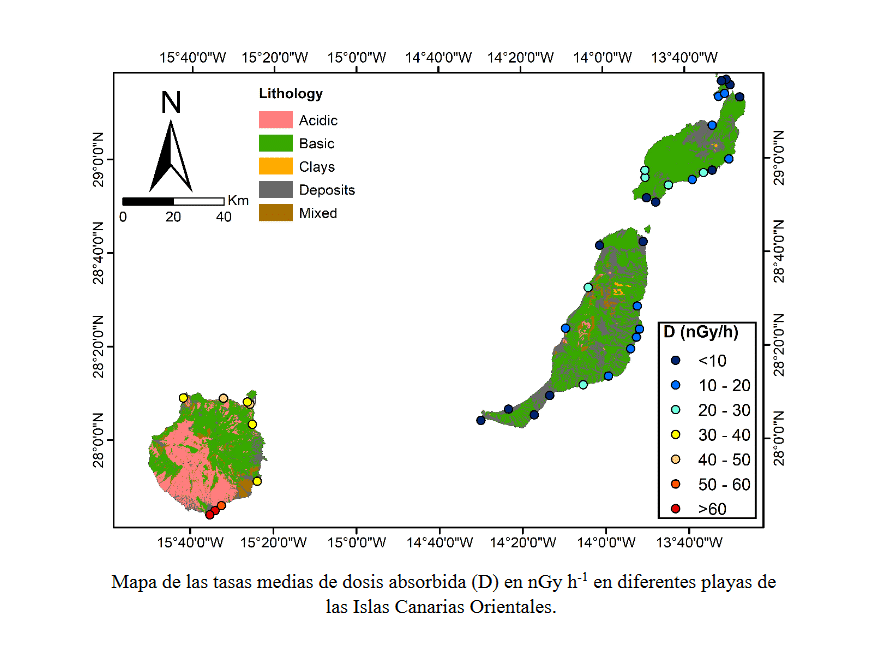 Mediante el análisis de 108 muestras procedentes de 39 playas, se pudo precisar el nivel de concentración de radio (uranio), torio y potasio, confirmando que estaban dentro de los márgenes de seguridad establecidos a nivel internacional. No obstante, llamó la atención de los investigadores el nivel superior de Gran Canaria, que parece estar relacionado con la presencia de sedimentos en sus playas con origen en litologías, cuyos valores de actividad son más altos, e, incluso, no aparecen en el resto de islas estudiadas.