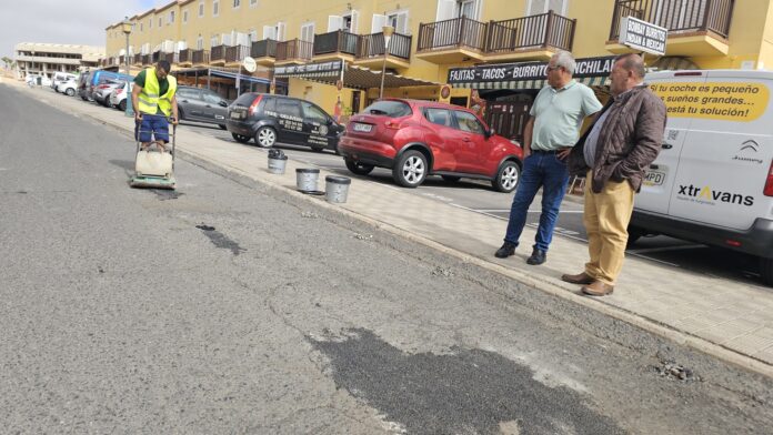 A su vez, el concejal Juan Cabrera, coordina una actuación de embellecimiento, reparando los baches en el asfalto de las distintas calles de Costa de Antigua, aportando más seguridad al paso de vehículos.